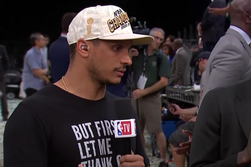 “But First… Let Me Thank God,” read Mazzulla’s t-shirt following the victory.